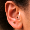 Percing du pli interne vertical. Son positionnement dépend du volume du pli et de la courbure naturelle du cartilage.