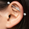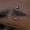 Variante plus graphique. Le positionnement est ajusté pour suivre la ligne naturelle du sourcil (Piercing de surface, renseignez-vous).