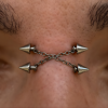 Percing horizontal à la racine du nez. Le positionnement varie selon la largeur et l’épaisseur de la zone.