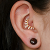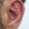 Alternative au rook classique. Le placement est adapté à l’anatomie pour reproduire un rendu visuel proche. (double perçage flat + conch)
