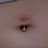 Percé au-dessus ou en dessous du nombril. Le placement est adapté à la morphologie, y compris pour les nombrils inversés/flottants.