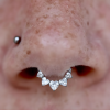 Percé sur l’aile du nez. Le placement peut être plus haut, plus bas ou légèrement décalé selon la morphologie du nez.