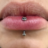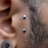 Percing de surface réalisé avec un bijou spécifique. La zone et l’orientation sont choisies en fonction de la mobilité de la peau. (Tragus/Arcade/Nuque/etc.)